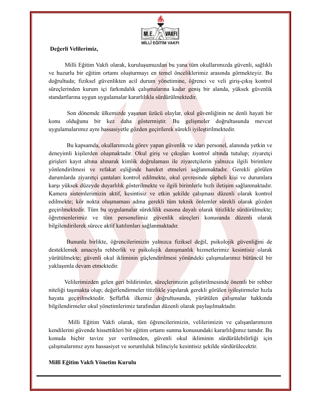 eğitim ortamını sürdürme kararlılığımız çerçevesinde yürütülen güvenlik
